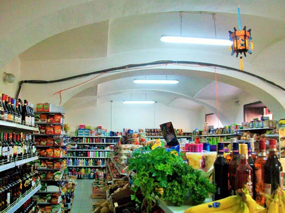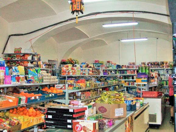 Michele spotted it first, now a supermarket run by a Chinese family. Outside is the original Ghetto building number, one of the few still remaining