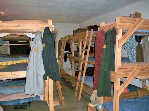 One building housed examples of the dormitories where thousands were crammed in. Lack of food, cramped conditions and disease were soon to take their toll on those poor souls who were kept there. When the Red Cross, seeking assurance as to conditions in Terezin, decided to visit and see for themselves the Germans solved the overcrowding issue by removing the top bunks and sending all those to Auschwitz. The Red Cross, suitably reassured, gave the camp a good review.