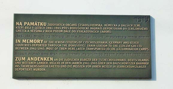 The first plaque is on the town hall in Terezin, the second is on the wall of the railway station at Bohusovic Nad Ohri