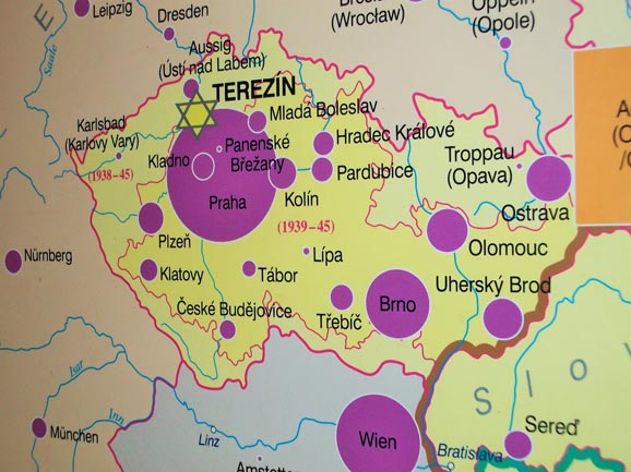 The map outlining the Terezin ghetto, inside the museum showing the areas where the jewish population centres prior to the war. Lota's family came from Prostejov, close to the city of Olomouc. Her mother was born in Uhersky Brod.