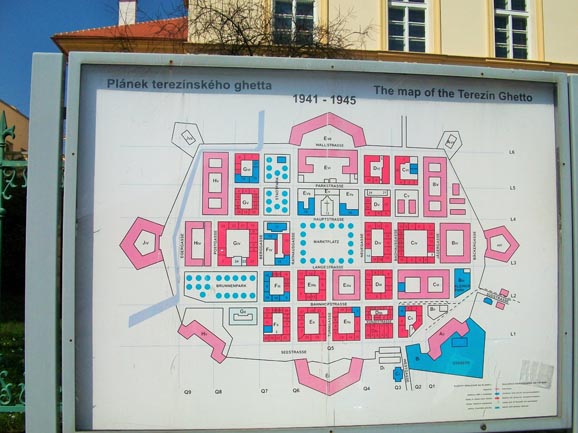 Myself with Tomas in the Ghetto museum and a layout of the Terezin Barrack town showing its carefully constructed grid system.